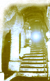 "I thought I might find you here," Louisa said. The girl looked up, displaying a tear-stained face. "Louisa? Is it you? I'm not going back!" "Do you dislike us so much, Camilla?" Louisa asked gently. "Not you," said the girl, with a sob. "You're nice. You're the only nice thing in this whole horrible place. Horrible Nottingham, horrible Miss Ireland, horrible Howard House School! And it's rained every day since I came! Even down here, all you can hear is the rain!" It was true. The rain drummed all around them, a gentle thunder in the rock. As they listened, it became louder. Camilla clutched at her friend as the clamour mounted. "I'm frightened!" Louisa peered between the columns as the noise became more deafening. There was an ominous sweet odour in the cave. With an explosive crack the door to the pleasure-grounds burst open as a torrent of floodwater gushed through. "Camilla," she yelled. "We have to get out of here!" She grabbed the child's arm and hauled her to her feet. Beyond the pillars, however, the floor of the cave room was in turmoil as water poured in, pounding the rock walls, sending waves against the columns and dashing sprays of icy water against the two girls' bodies. As the torrent slackened, Louisa began to lower herself into the water, hoping to wade towards the stairs leading up to the school. The water was already too deep. She could see the pale square that was the nearest window, water lapping its ledge. Even if they could get to it, it was thickly glazed and did not open. Camilla helped her struggle back behind the pillars. "Follow me," the girl said. "I know where we'll be safe!"