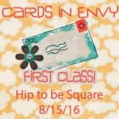 So pleased that my card Squaring Up has been named First Class Card at Cards in Envy for the Hip to be Square challenge. It’s been crazy this week (my work ramps up dramatically at the beginning of term) and I’ve no cards made, so it was thrilling that people liked my card 🙂