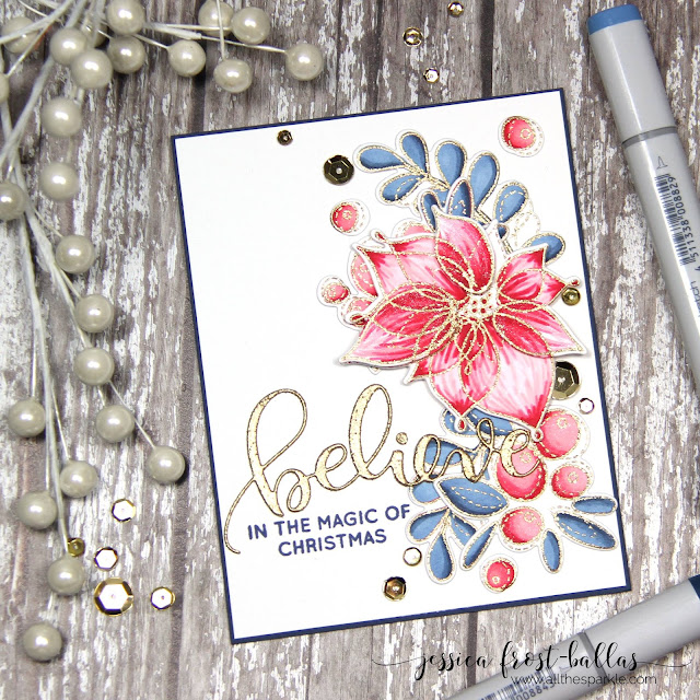 The trees were a free magazine Christmas tree stamp used with a variety of colours of Distress Oxide Ink which was then loosely coloured in and dragged with a paintbrush for the watercolour effect.