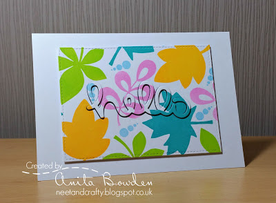 A L’Aquarelly bird, stamped in Memento black (as is the black part of the sentiment, Hunkydory) and watercoloured in blue and yellow: and a Magenta greeting coloured in silver foil pen. The gems are Kanban, with the yellow ones being originally white and now coloured in yellow Colorbox ink.